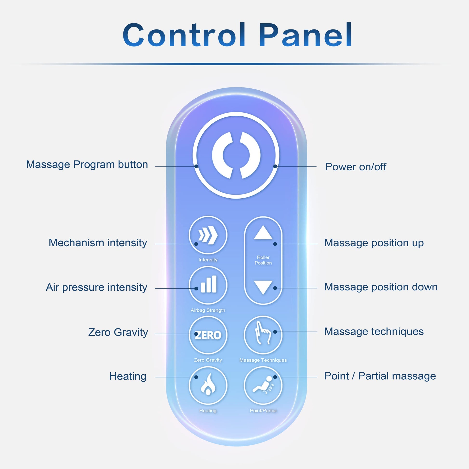 - 【Einfach zu bedienen】Das Massage-Programm Bedienfeld befindet sich bequem an der rechten Armlehne des Stuhls, alle Funktionen können schnell und einfach über das Bedienfeld bedient werden.