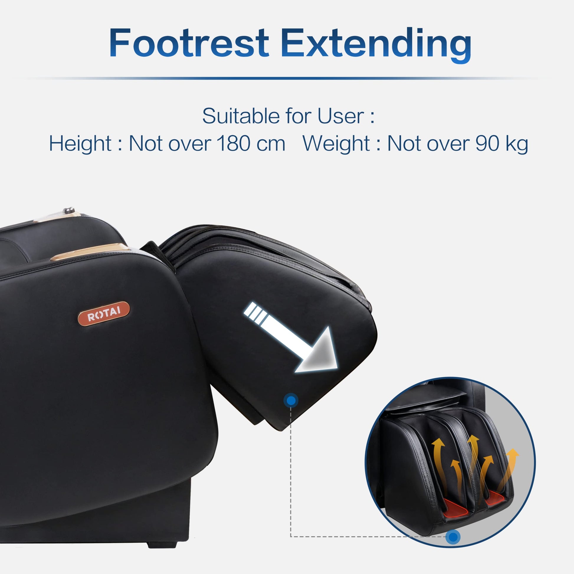 Rotai Massagesessel 3D Massagestuhl mit SL-Schiene Elektrischer Fernsehsessel Kleiner Massagesessel mit Automatikprogramme-USB, Bluetooth
